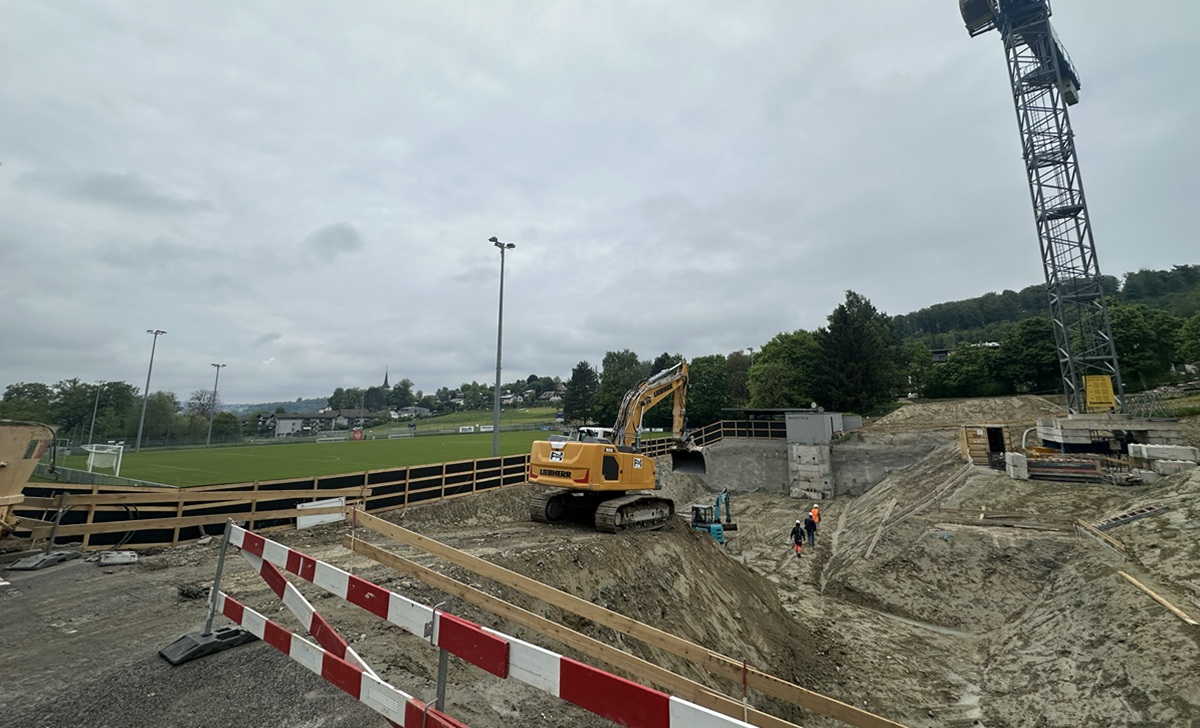 Le projet prend forme à Villars-sur-Glâne : les travaux de terrassement des nouveaux vestiaires du terrain de foot de Platy avancent rapidement.