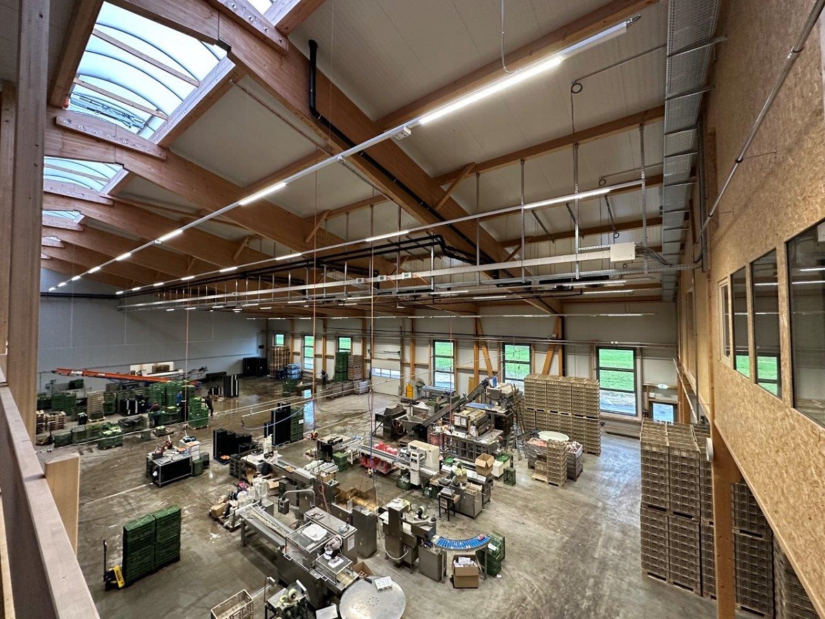 Construction d’un nouveau bâtiment de stockage et de conditionnement avec chambres froides pour les légumes bio de la région du Seeland. L’eau chaude est produite selon les besoins par un chauffe-eau pompe à chaleur. Les eaux de pluie sont récupérées et réutilisées, grâce à une système de surpression pour le nettoyage des machines et l’arrosage extérieur